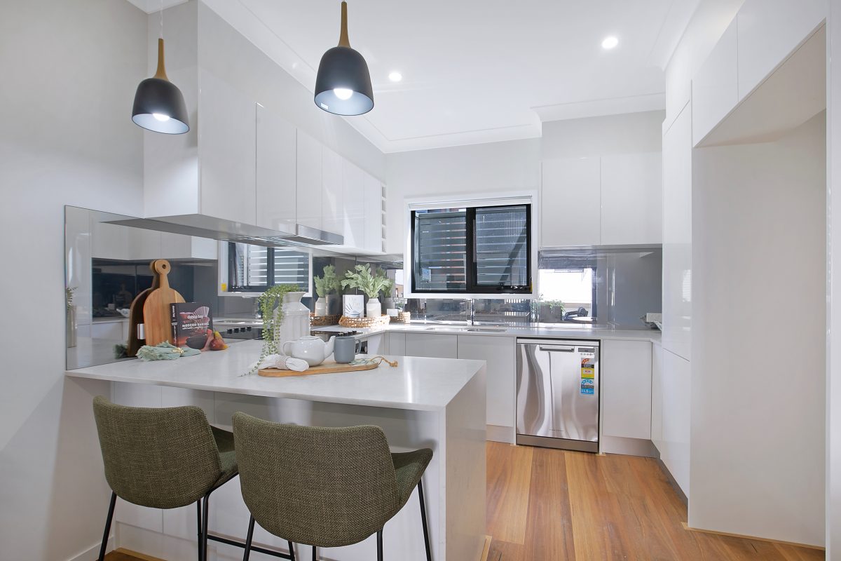 The entertainer’s kitchen is a standout feature, showcasing premium 20mm stone benchtops with a waterfall edge, quality Fisher & Paykel appliances, and a spacious workspace perfect for meal preparation. Soft-close cabinetry, generous storage, and an elegant modern splashback complete the kitchen’s sophisticated look. The open-plan living and dining areas, with impressive 2.7m ceilings in living areas Townhouse 6 & 7 and 2.5m Ceilings for townhouse 10, create a light-filled, expansive feel ideal for everyday living and entertaining.
