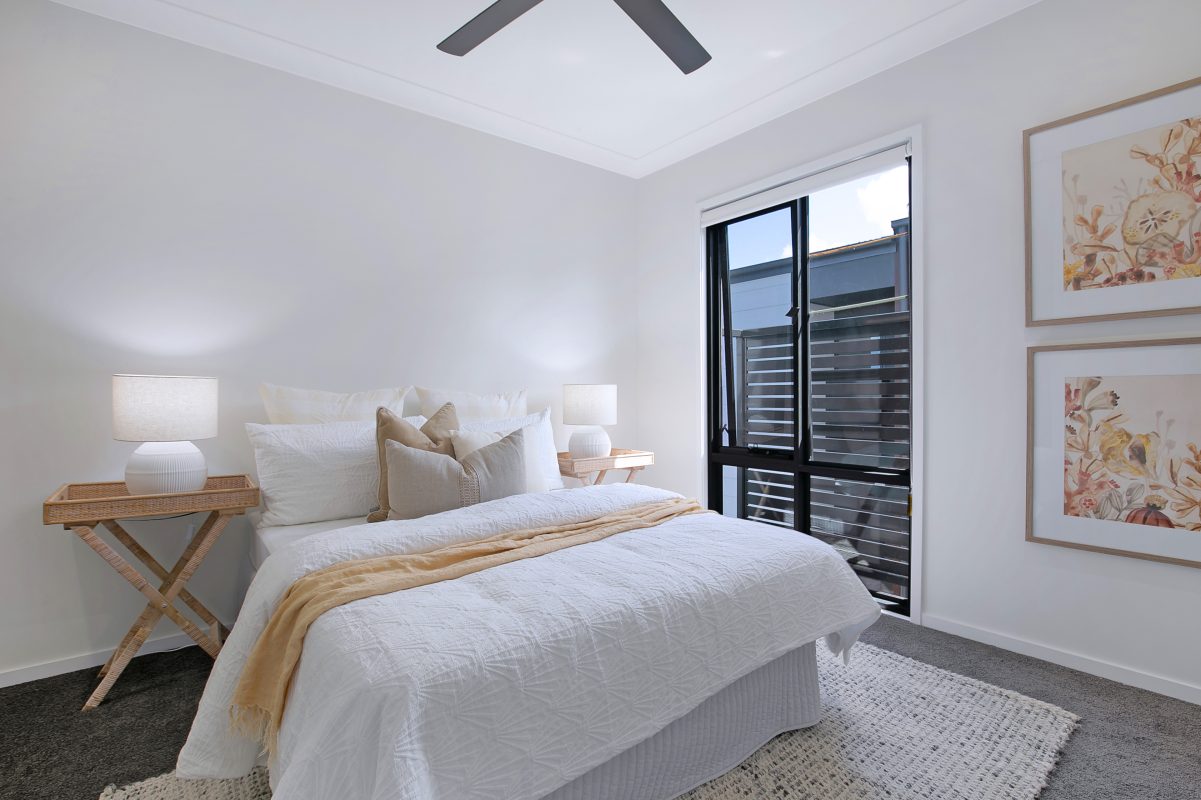 Each townhouse includes three generously sized bedrooms and stunning Scandinavian-inspired bathrooms, fully tiled and complemented by sleek, minimalist cabinetry. Multi-zoned ducted air conditioning keeps every space comfortable year-round. Designed with families and professionals in mind, each home features a luxurious master suite, a stylish family bathroom, and an additional powder room for extra convenience.