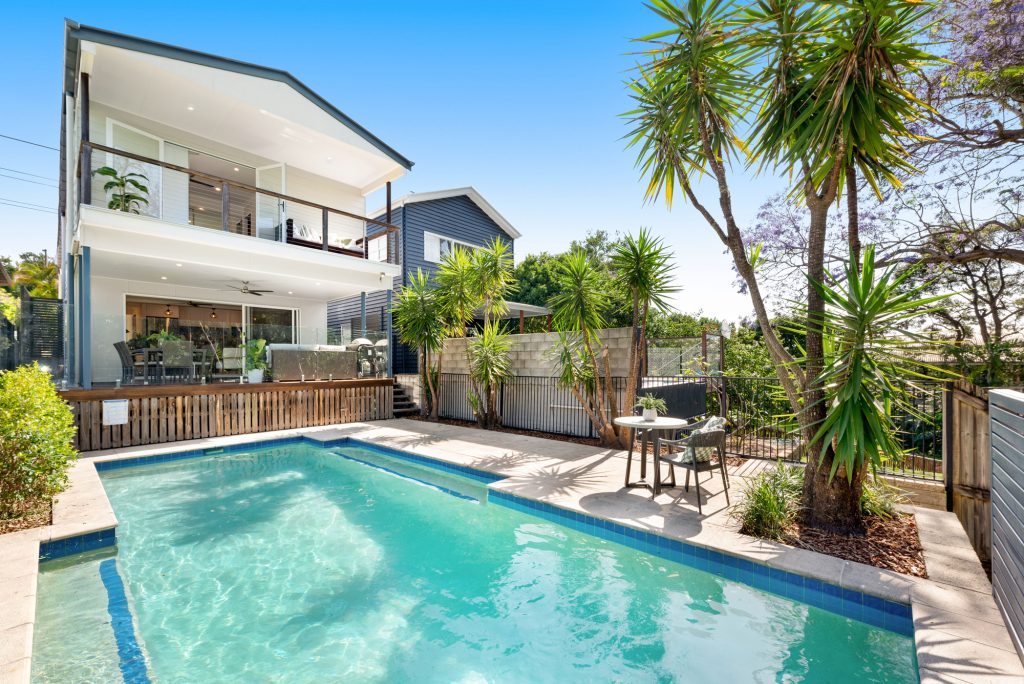 Though cute and cosy in its curb appeal, the quaint exterior of this home belies what’s within – a sprawling haven of unexpected beauty and discovery, with multiple living areas and a salt-water pool at the back inspiring a splash of tropical resort-style magic. The position is just impressive; placed along one of the area’s finest streets, this peninsula paradise is just a short downhill wander to the thrilling Oxford St precinct, Cineplex, and parkland, along with swift Bulimba ferry links to the CBD.
