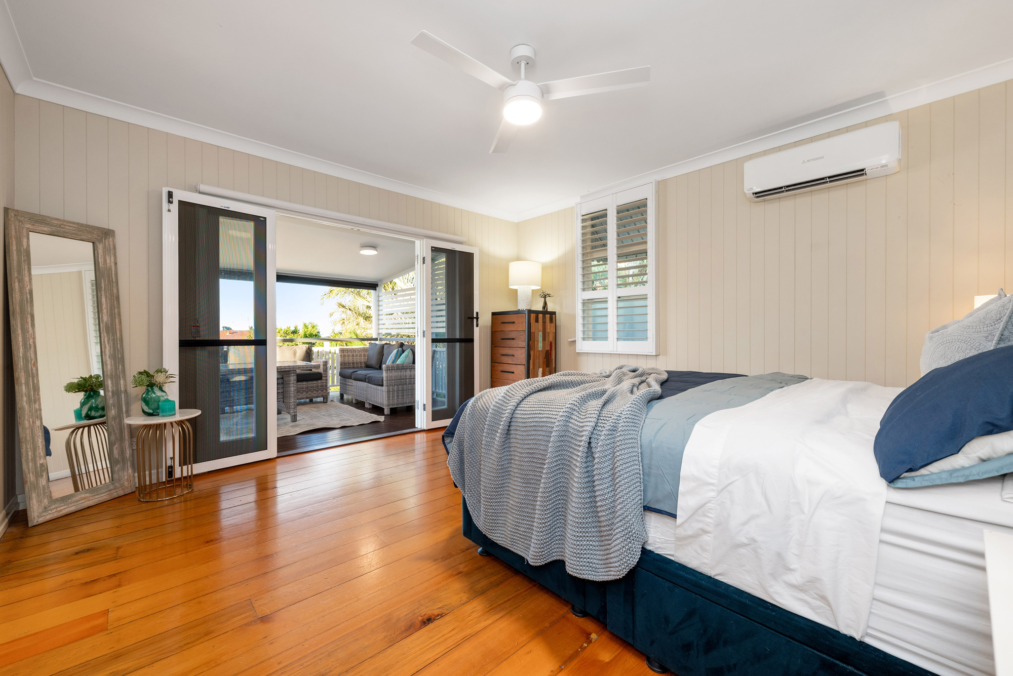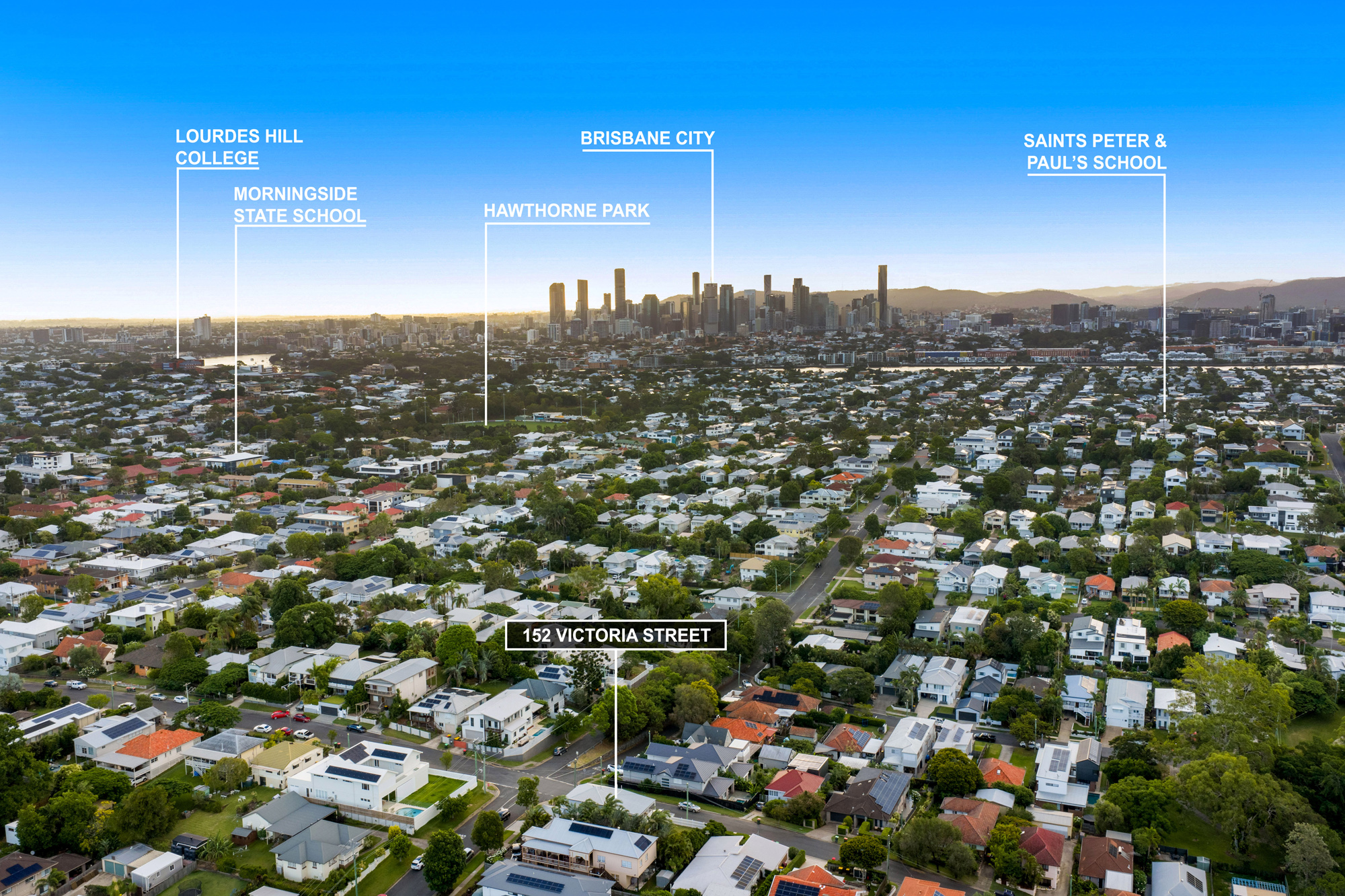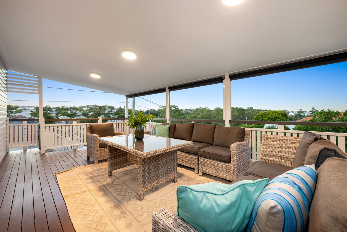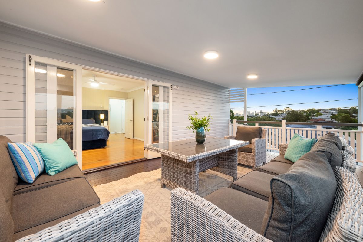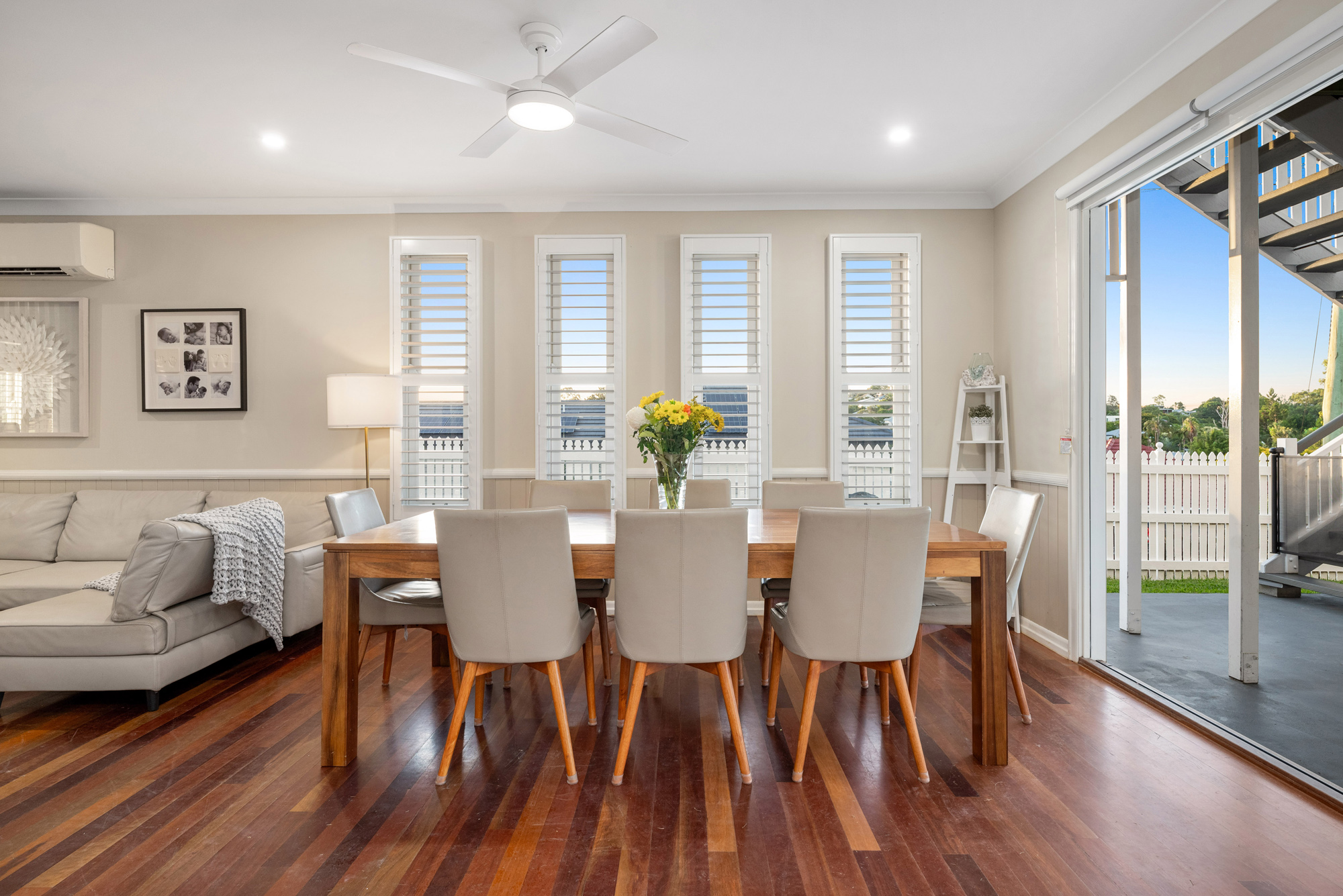 Quiet, serene, and drenched in sunlight, this Queenslander claims a breathtaking panoramic backdrop; perched high in the peaks of Morningside, the views span the light-jewelled CBD, Seven Hills Bushland Reserve and Balmoral Hill, right down to the leafy green canopy over Balmoral dog and skate park below. Boasting flexible entertaining areas and a relaxed, low-maintenance outdoor lifestyle, it’s a perfectly-positioned family retreat, situated within easy walking distance of St Peter and Paul’s Primary, Hawthorne cafes, and Morningside’s dining hub, plus just metres Monocle coffee, and CBD bus links.