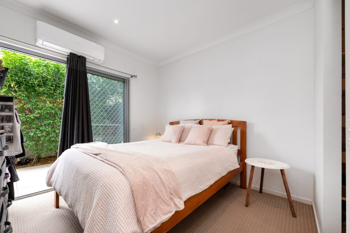 Spanning a generous 169m2 in total, the three level design basks in a golden North-rear aspect and boasts a beautifully breezy layout with indoor-outdoor zones spread across each level. Sprawled across the mid-floor, a spacious living, dining, and Smeg gas kitchen opens to balconies on both sides; upstairs, one of the two bedrooms boasts a sunny balcony of its own, while the ground floor serves up a terrific spot for guests, growing kids, or working from home with a well-sized bedroom including a walk-in, ensuite, and direct access to pet-friendly gated gardens.