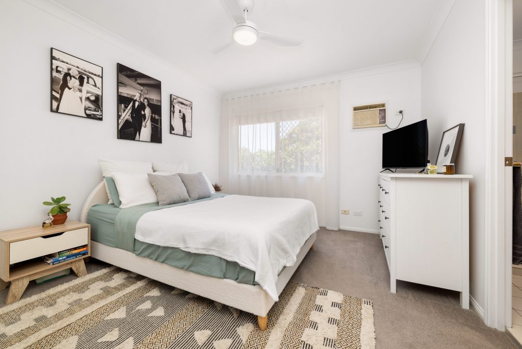 Facing North, the interiors are filled with beautiful natural light throughout the day and open up to a stunning outdoor social zone with a sheltered patio and yard all wrapped in a private frame of greenery. Two beds above include an ensuited master, while there’s also huge highlights like secure garaging, air con, and only one shared wall to give it an extra boost of breeze.