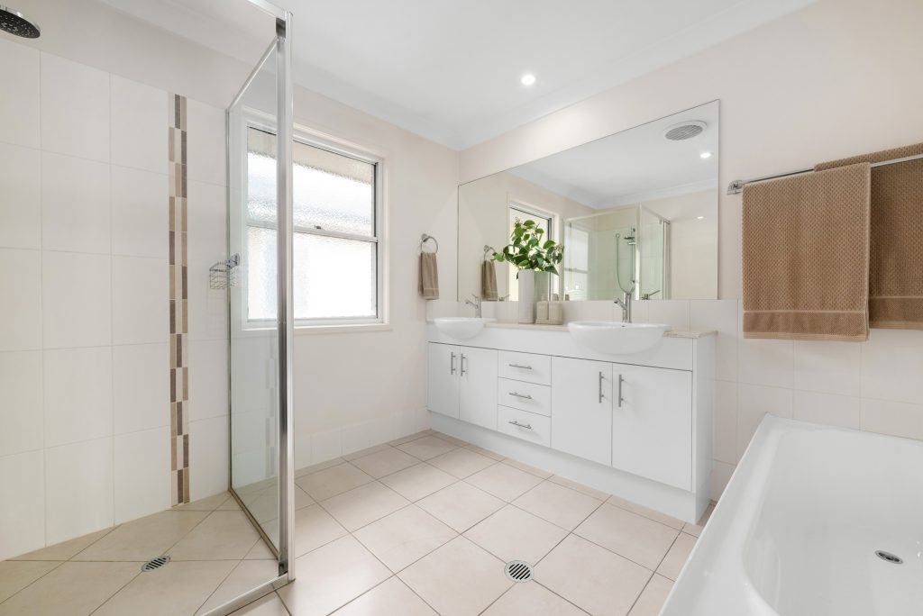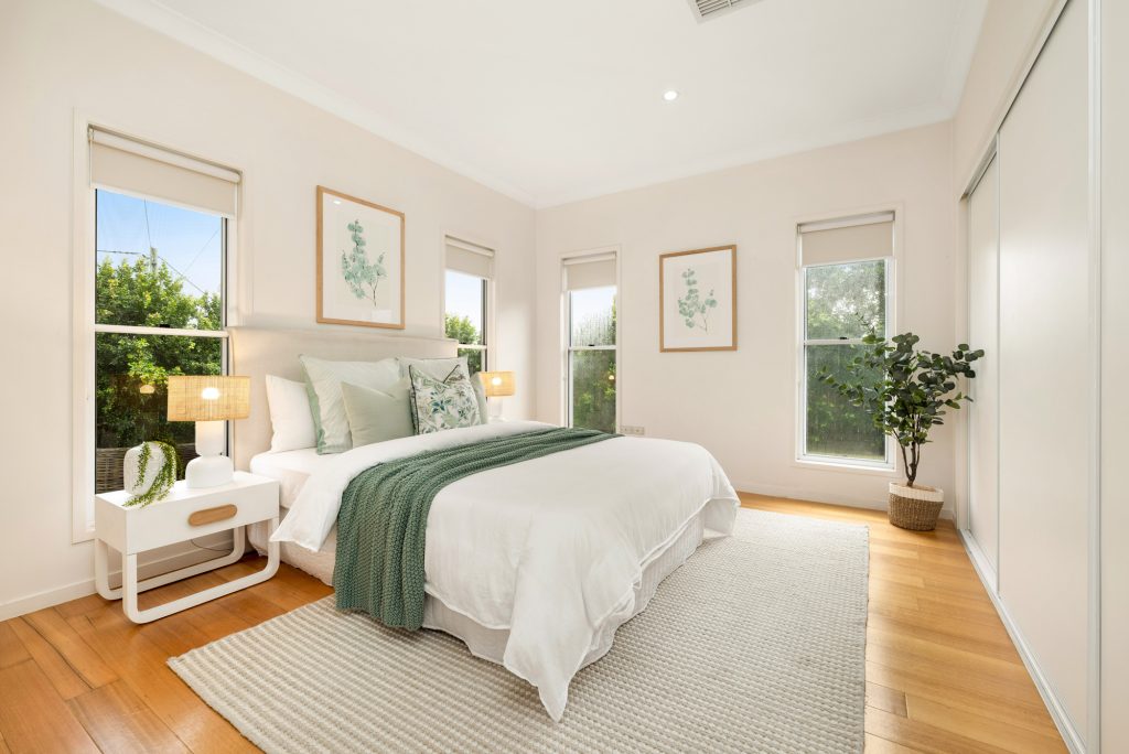 Relaxed, open, and remarkably versatile, it’s thoughtfully zoned for parents and kids with light-filled living spaces across each floor, which flow off to a sunny North-facing deck, sheltered al fresco patio, and lush hedge-framed lawns. There’s a clever arrangement here with four stunning bedrooms on the upper-level including an enormous master paired by a walk-in, ensuite, and private balcony, plus a ground floor bedroom serviced by a full bathroom – perfect for an extra media room, blended households, or a comfortable and secluded guest bedroom.