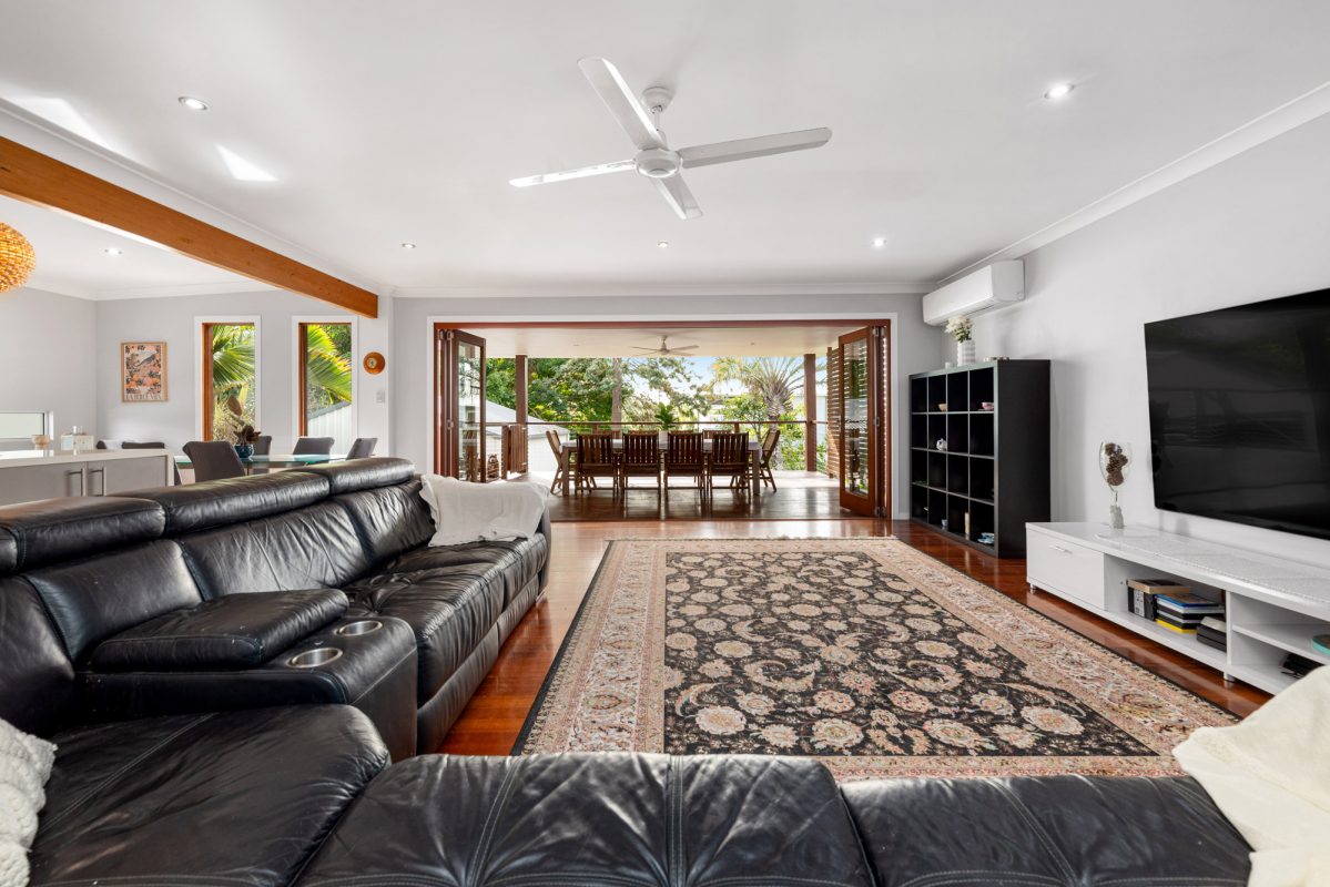 Warmed continually by a superb North-East rear aspect, its sun-filled interior features separate living and sleeping zones, air con throughout, and an incredibly generous open plan lounge that expands beautifully onto a massive rear deck. Offering four bedrooms, including a master with an ensuite and walk-in, it’s thoughtful design gives everyone space to recharge when needed, and spills out to level, fully-fenced lawns where kids and pets can play safely.