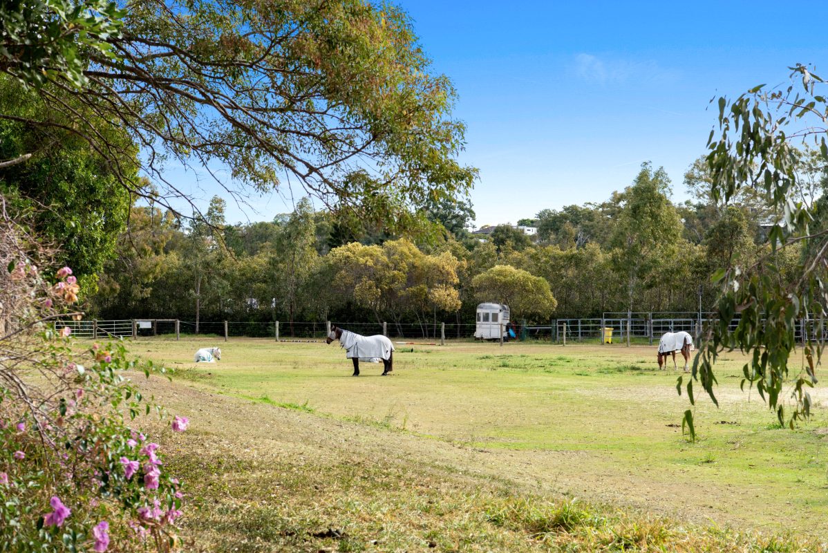 Every so often a home feels like a long-held dream finally brought to life; 80 Beelarong Street is such a place – backed by wide open greens and the quiet equestrian residents of the South Side Pony club, it’s a setting with the stillness and country-like calm we all crave, yet without ever leaving the comforts of home or close reach of the city. Hidden along a highly prized, pin-drop quiet cul-de-sac, it feels far removed from metropolitan life while being almost unbelievably just 6km from the CBD, minutes from top schools like CHAC and Lourdes Hill, and strolling distance to Morningside Central grocers, with Beelarong Farm’s gorgeous communal gardens just at the end of the street.
