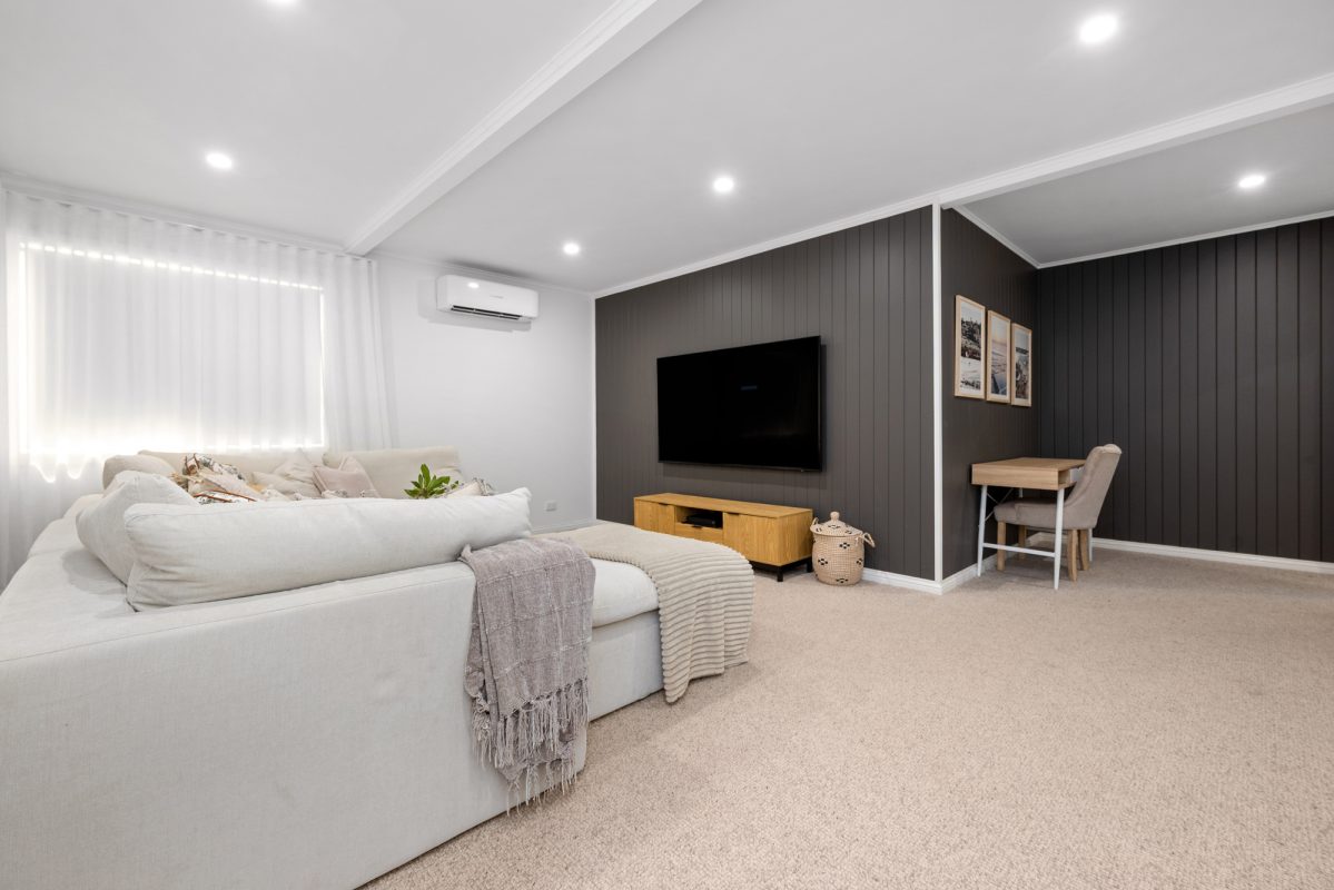 Inside you’ll find a layout that’s brilliantly configured for growing and blended families, with a flow of living and entertaining zones offering endless versatility for the lucky new owners. On a sprawling 759sqm block, the home connects beautifully with its natural surrounds; upstairs is the perfect retreat for older kids with three enormous bedrooms, a study, and extra tv lounge, while below includes an enormous media/second lounge and a huge ensuited master, with a fire-lit open lounge spilling to a sunny back deck, beautiful North-East Breeze and peaceful pony club views.