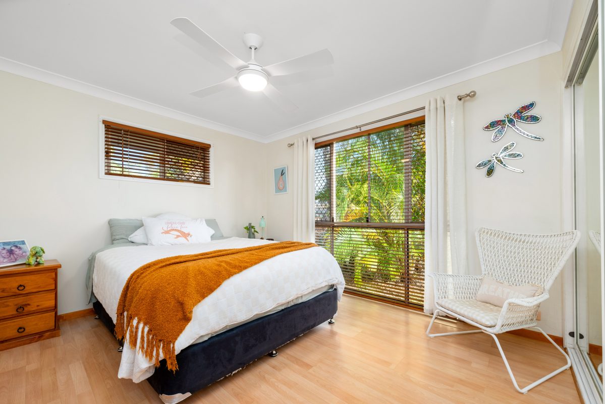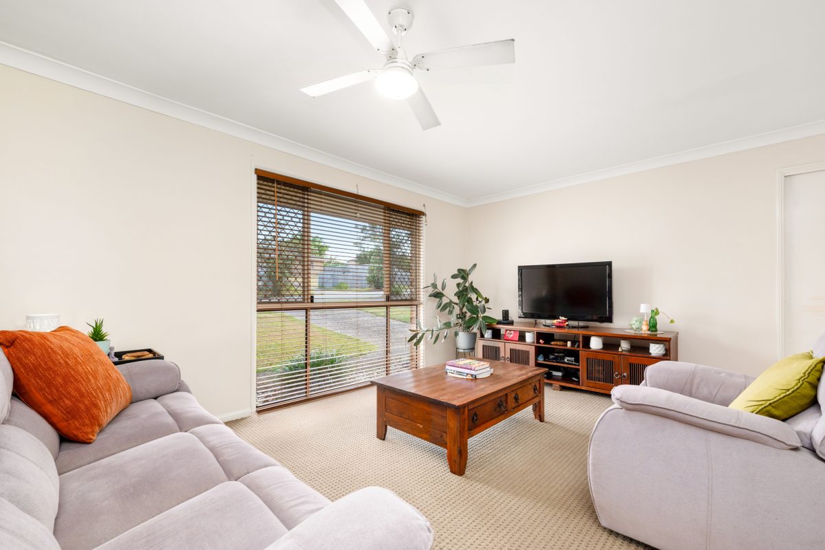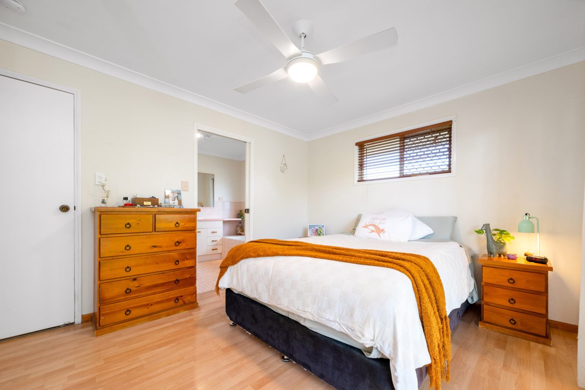 Set to soak up a superb North-rear aspect, it’s an easy-paced design with plenty of natural light, terrific family zoning and entertainer’s appeal. Anchored by a large central kitchen, the casual family lounge and open plan living/dining zone extend to a large sheltered patio and lush level lawns; ceiling fans keep the cross-breezes flowing throughout, while a dual-access bathroom adds a handy ensuite-style set up to the master. With side gated vehicle access to the rear yard, it’s got plenty of space to park boats, campers, trailers, or kick the footy on the weekend, while there’s also secure garaging, air con, and solar among its compelling list of highlights.